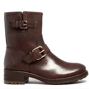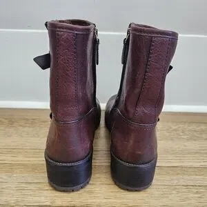 Tory Burch Chrystie genuine leather brown buckle moto boots chunky heel size 8.5