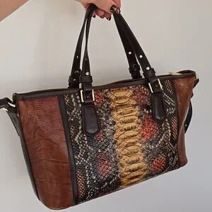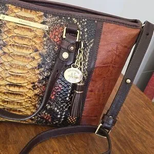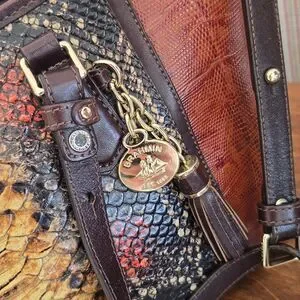 Brahmin | Mini Asher Brown Tyndal Snake Lizard Smooth Leather Satchel