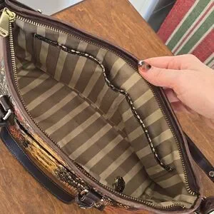 This stylish women's bag features a sophisticated brown and black design, perfect for any occasion. Its elegant look is complemented by high-quality materials and a versatile strap.