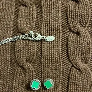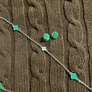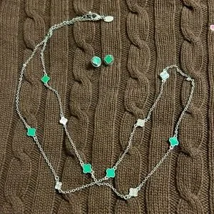 (Bundle 3 for $15) Charming Charlie Silver and Green Clover Necklace Set