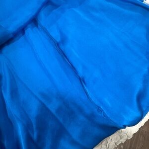 Chic collared mini dress. Bold royal blue hue. Ideal for stylish outings. Very elegant silk dress
