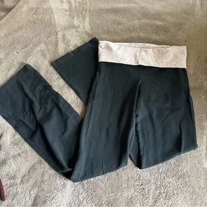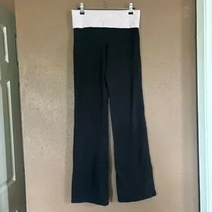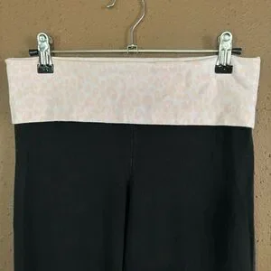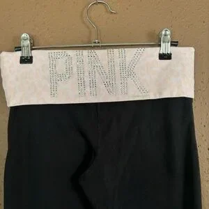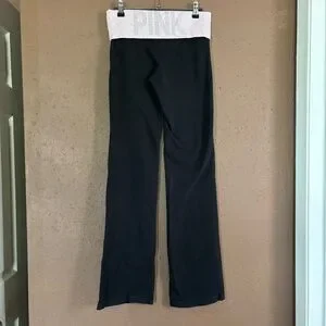 Classic black yoga/lounge pants from PINK by Victoria's Secret featuring a light pink fold-over