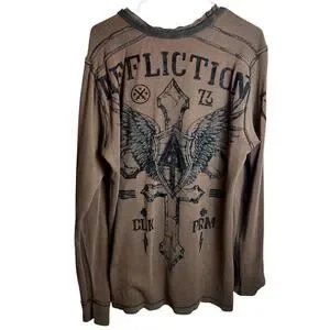 Whether you're hitting a casual gathering or just enjoying a relaxed day, this Affliction thermal is sure to make a statement. It's a genuine eye-catcher and a must-have for fans of the brand or vintage-inspired fashion. Don't miss out on adding this versatile and iconic top to your wardrobe!
