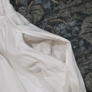 This elegant white and cream eyelet dress is perfect for any occasion.