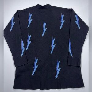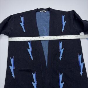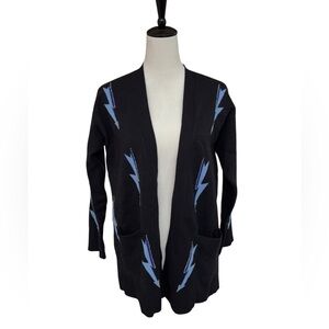 Elevate your wardrobe with this stunning Sandro Paris lightning bolt cardigan in black with blue graphic detailing and subtle bead accents.