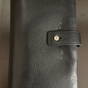 Condition: Pre-owned. Shows visible wear including creasing, corner wear, and light interior marks. Hardware shows minor wear. Snap closure works and stays closed but feels slightly softer than when new due to normal use. Fully functional.