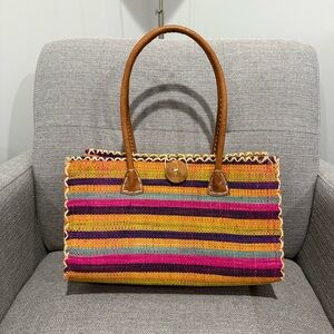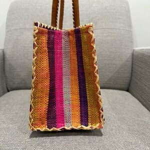 Brighten your day with this vibrant striped tote bag. Perfect for any occasion, this bag combines style and functionality. The colorful design adds a pop of color to your outfit.