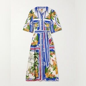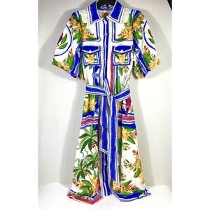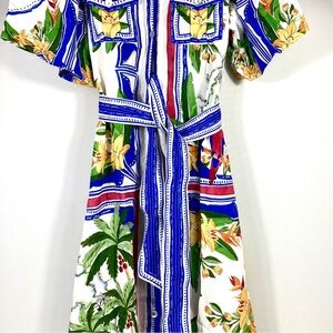 *SOLD* Farm Rio Tropical Destination Midi Linen Blend Shirt Dress Small NWT
