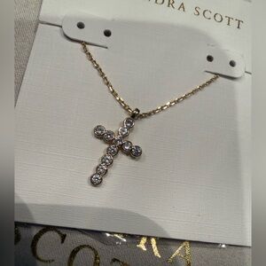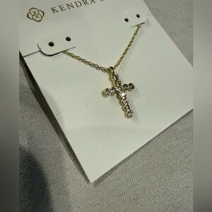 ✝️Kendra Scott KS Cross Gold Pendant Necklace in White Crystal