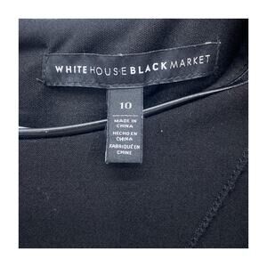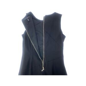 Timeless WHBM black sheath dress in size 10. Sleek, structured fit with asymmetrical seam detailing that flatters the waist. Gold back zipper adds subtle polish. Stretch fabric makes it comfortable for all-day wear.
