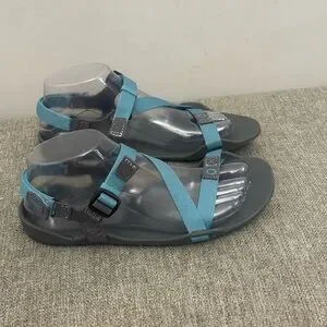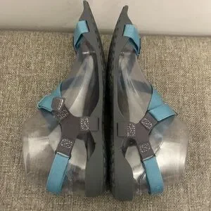 Stylish teal and gray strappy sandals. Perfect for casual outings.