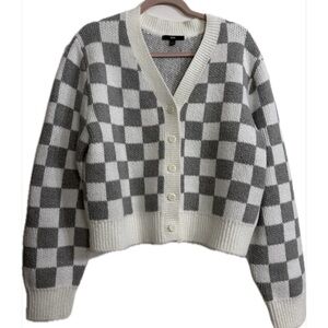 Women’s Vans Evelyn Checkered Cardigan Gray and White Sz Large