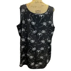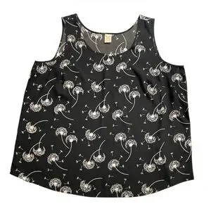 Elegant black tank top with dandelion design. Ideal for casual wear.
