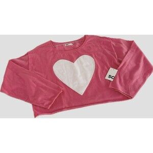 SO Juniors Pink Heart Cropped Sweater Size M Soft White Heart Coral Pink NWT