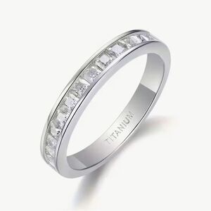 🩶 Chic titanium ring with silver Sparkling accents enhance its elegance. Classic Square Cubic Synthetic Zirconia Ring, Luxury Titanium Steel Engagement and Wedding Jewelry for Women Perfect for any occasion size 8 🩶