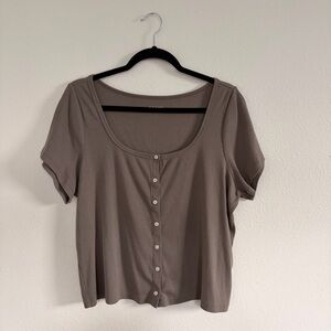 Old Navy Ribbed Women's Taupe Button-Up T-Shirt