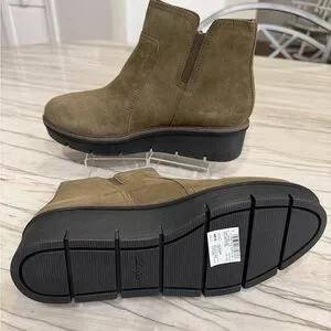 Clarks Collection “Airabell Zip” ankle boots in Dark Olive Suede 🌿