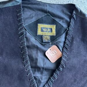 AJ’s Men’s Large Black Suede Leather Snap Vest 90s Western Stitch Detail Rodeo Festival