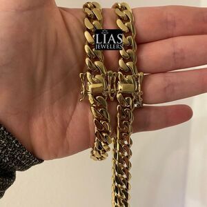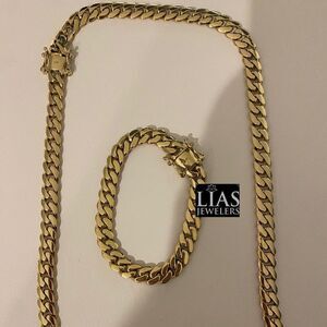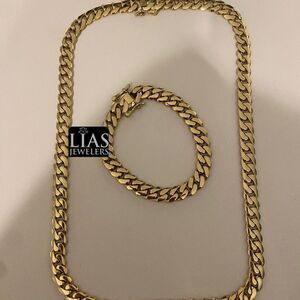 Brand new 14k yellow gold filled Cuban link chain and bracelet set