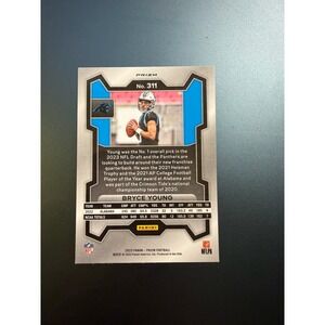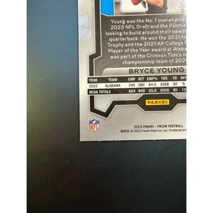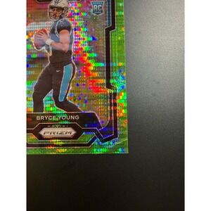 The 2023 Panini Prizm - Rookies Bryce Young #311 Neon Green Pulsar Prizm (RC) trading card is a highly sought-after collectible item in the sports trading card market. Featuring the promising rookie athlete Bryce Young from the Carolina Panthers, this card is part of the official 2023 Panini Prizm set. Made of durable card stock, this original card showcases a parallel variety design in a striking neon green pulsar prizm color. While not autographed, it still holds value as a must-have for fans and collectors of football trading cards.
