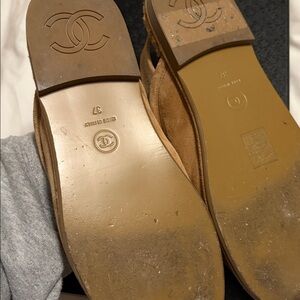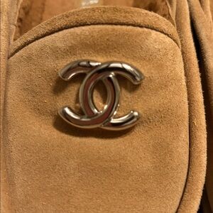 Elegant camel suede slingback loafers with shearling insole and iconic CHANEL logo. Perfect for sophisticated style. Excellent condition and comes with original box . Only worn once . These are sold out everywhere