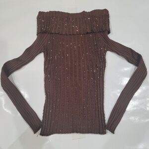 vintage beaded cache brown off the shoulder top with gold shimmery studs