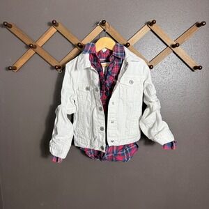 Gap Kids White Denim Jacket M & Abercrombie Kids Plaid Ruffle Shirt S Bundle