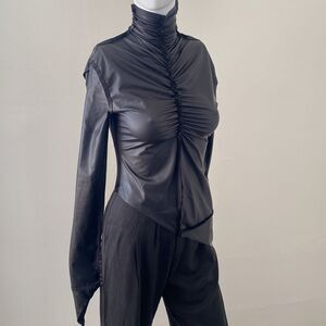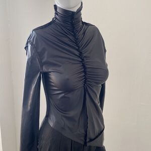 Sami Miro Vintage Shirred Vinyl Turtleneck Black Eco-Conscious Top in Carbon