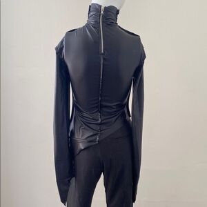 New without tags. Featuring the Sami Miro signature open seam lines and asymmetric hem. Figure flattering, sexy and elevated with an exposed metal zipper at the back of the neck. Made from deadstock vinyl and lined with stretchy power mesh.