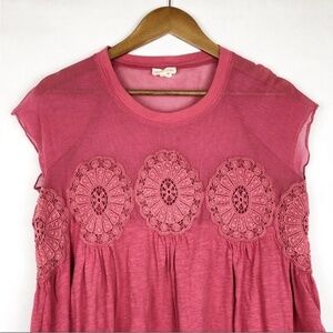 Anthropologie Meadow Rue Mesh & Medallion Blouse Rose, Size S