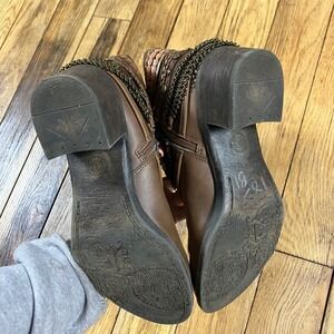 Crown Vintage Brown Boho Chain Braided Ankle Boots Womens 9 Block Heel Zipper