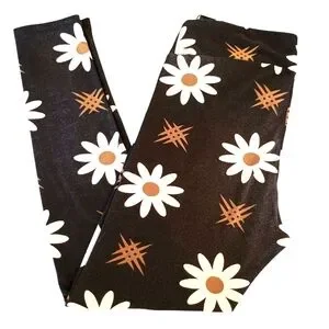 LuLaRoe Black White Gold Daisy Floral Buttery Soft Leggings Tall And Curvy TC