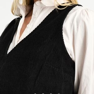 Nobody's Child Black Cord Piper Mini Pinafore Dress