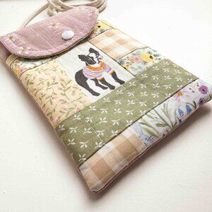 Handmade boston terrier patchwork cell phone/passport bag