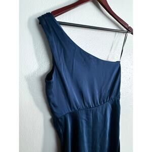 ABERCROMBIE AND FITCH a&f blue one shoulder satin knotted midi side slit dress