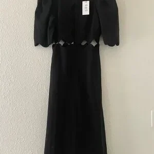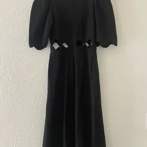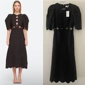 Sea New York NWT Leona Short Sleeve Cut Out Scalloped Midi Dress in Black Size 2