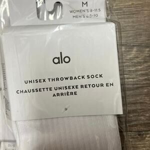 NWT Alo Yoga Unisex Throwback Socks White Black Retro Logo Size MEDIUM NEW