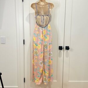 Free People Wisteria Maxi Dress Light Combo Floral Open Back Pink Size XS New