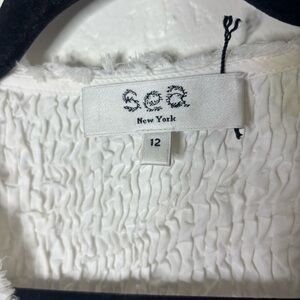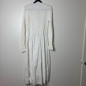 Sea New York Casey Hand Smocked White Long Sleeve Midi Dress Size 12 Large