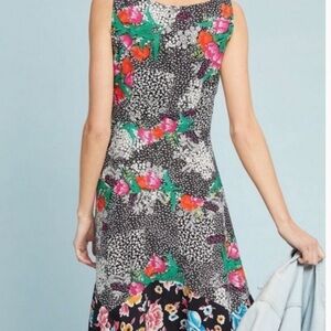 ANTHROPOLOGIE Maeve Violette Midi Sleeveless Dress Black Floral Multi