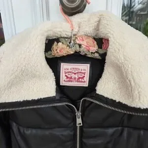 Levi's Women's Black Puffer Jacket with Cream Collar