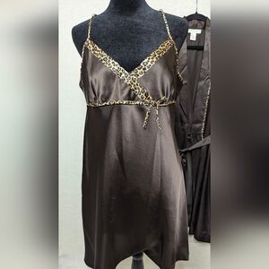 Morgan Taylor Luxe Espresso Satin & Leopard Robe Set - XL - Chocolate Brown