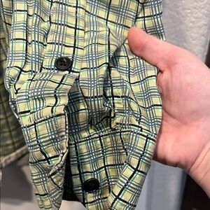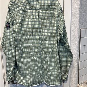 Elevate your casual wardrobe with this green plaid shirt from DC Company. Perfect for everyday workwear, it combines comfort and style effortlessly. FR shirt has some stains.