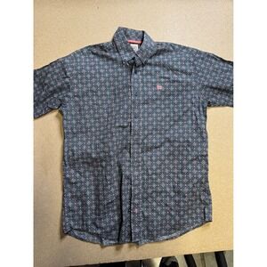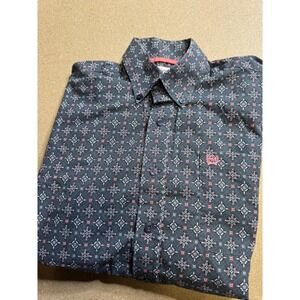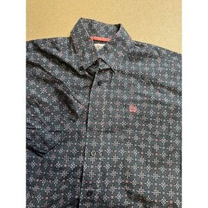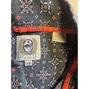 Cinch Mens XS Short Sleeve Button Down Shirt Grey Pink Geometric Western Cotton