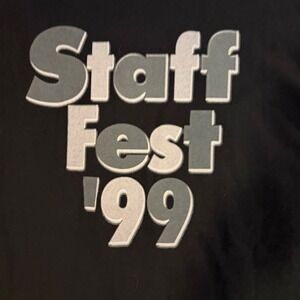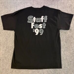 Keywords: Vintage, 90s, Retro, Streetwear, Graphic Tee, Promo, New York, Hippo, Staff Fest, Single Stitch, Corporate, Y2K, Oversized, Cotton, Black Tee