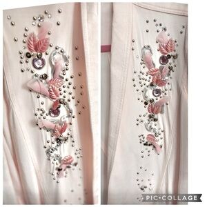 VINTAGE 80S PINK STUDDED BEADED FLORAL EMBELLISHED SHOULDER PAD SOFT JACKET GLAM