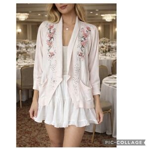 VINTAGE 80S PINK STUDDED BEADED FLORAL EMBELLISHED SHOULDER PAD SOFT BLAZER GLAM