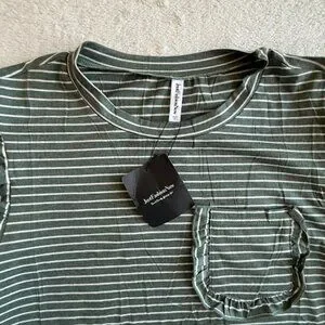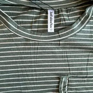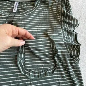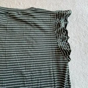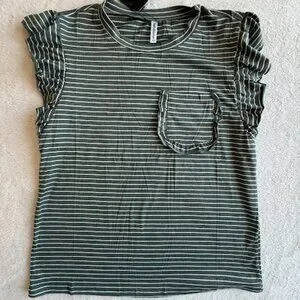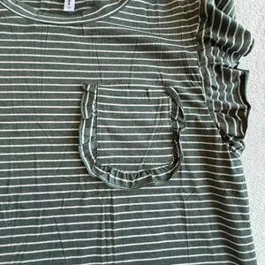 NWT Olive Green Striped Ruffle Sleeve Tee Womens Casual Pocket Top Size M