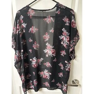 Black Floral Women's Oversized Kimono/swim Suit Cover Size S/M Maurices