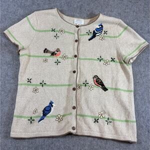 Christopher & Banks Cardigan Womens Hand Embroidered Bird Floral Grandmacore XL